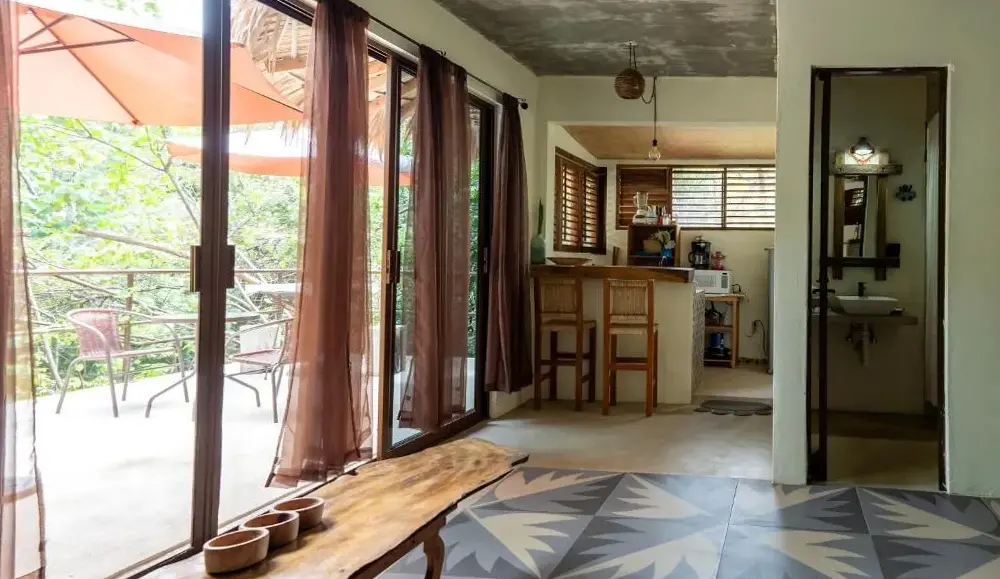 El lugar está rodeado de árboles, suenan todos los insectos que viven en el mangle de alrededor, es un lugar hermoso para experimentar la naturaleza en un lugar que tiene su espacio de naturaleza pero con la seguridad de que cerca hay compañía y seguridad. Los anfitriones son espléndidos, cálidos y serviciales.